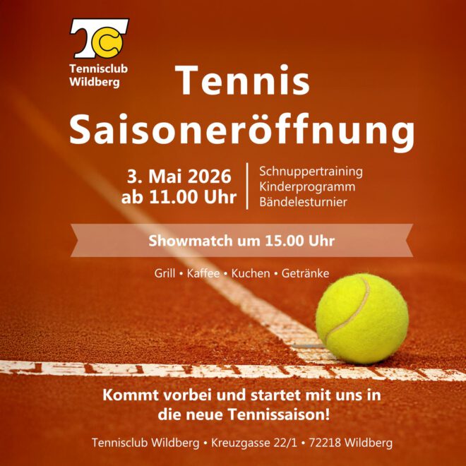 Unser Tennisverein feiert dieses Jahr 50. Jubiläum! Die Saison starten wir mit einem besonderen Auftakt durch tolles Programm mit Schnuppertraining, Showmatch, Kinderprogramm und jeder Menge Spaß. Für das leibliche Wohl ist bestens gesorgt. Alle sind herzlich willkommen, auch Nicht-Mitglieder. Ab Mai starten unsere Trainingskurse: Mittwoch 15h30 – 16h30 gibt es noch freie Plätze für Kinder/Jugendliche. Dienstag abends gibt es noch freie Plätze für Erwachsene sowohl Anfänger als auch Fortgeschrittene.